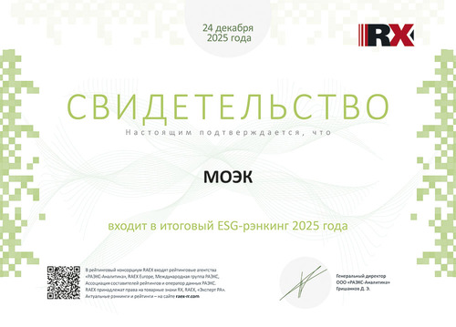 ПАО «МОЭК» впервые вошло в ESG-рэнкинг компаний за 2025 отчетный год от Рейтингового агентства RAEX* (топ-компании с лучшими корпоративными практиками в области ESG RAEX (https://raex-rr.com/ESG/ESG_companies/ESG_rating_companies/2026.1).